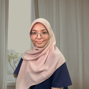 Nur Aliah Binti Zainal Abidin from Kamunting, Perak. She carried on her education at Selangor Matriculation College by enrolling in Science Foundation. Then Nur Aliah continued her education by pursuing a BSc (Hons) in Occupational Therapy at Universiti Teknologi Mara (UiTM). She